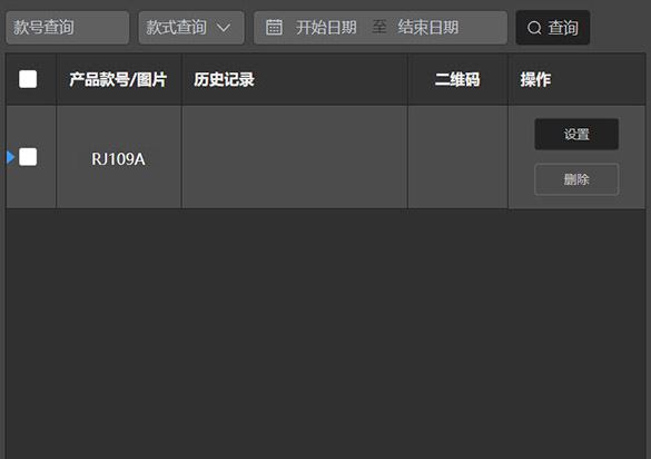 搜索列表产品显示已上传的定制交互记录,按款号列表展示;